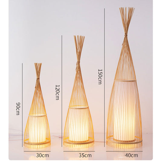 Rustic Bamboo Lantern Wooden Floor Lamp - Boho Chic Home Decor