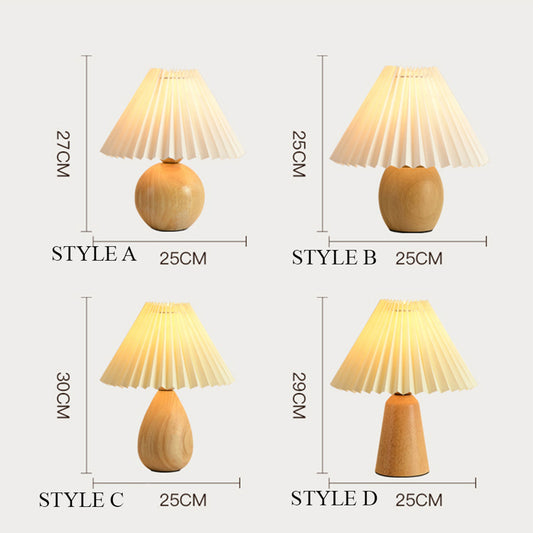 Creative Pleated Table Lamp, Wooden Night Lights, Pleated Fabric Lampshade
