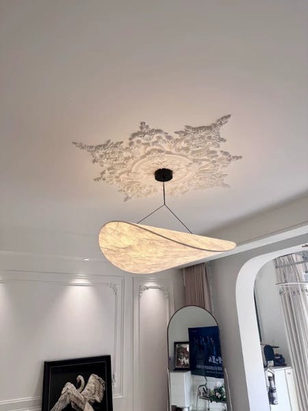The silk lamp has a unique shape and is very light. If your home has a gypsum board ceiling, you can install it with confidence. The details are very exquisite, and the curvature and silk cover are perfect. It looks good with French, retro, and quiet styles.