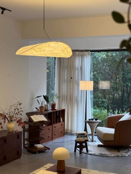 Inspired by the graceful curves of kites soaring through the sky, our wabi sabi pendant light brings a touch of minimalist elegance to any room. This unique fabric lampshade embodies the essence of wabi sabi design, celebrating imperfection and natural beauty.